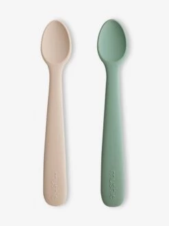 Lot De 2 Cuillères Ergonomiques D’apprentissage + Boîte De Transport BEABA Rose/gris – Beaba