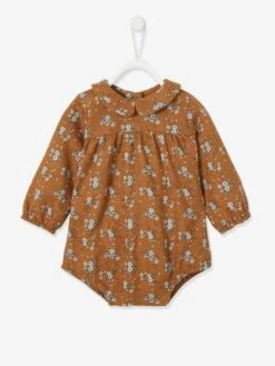 Barboteuse Fleurie Bébé Manches Longues Caramel Imprimé – Vertbaudet