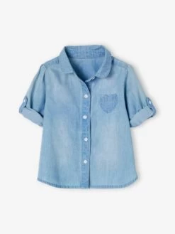 Chemise En Jean Délavé Bébé Fille Personnalisable Denim Bleached – Vertbaudet
