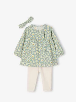 Ensemble Bébé Naissance 3 Pièces Bandeau, Robe à Motifs Et Legging Bleu Grisé – Vertbaudet