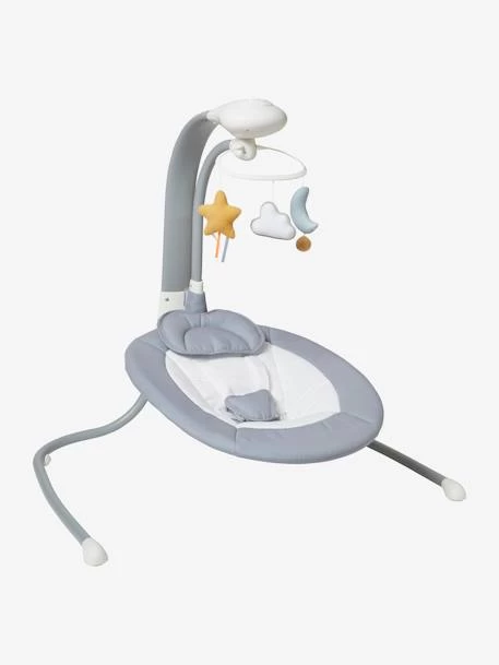Etudiée pour la détente et le repos de bébé, la balancelle Astro’Nef Premium propose 5 vitesses de mouvements et de nombreuses mélodies pour le bercer et l’apaiser ainsi qu’une arche de jeux pour l’accompagner dans son éveil.