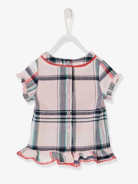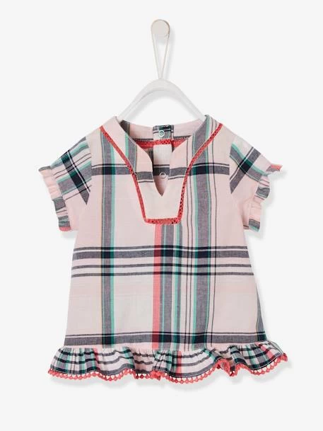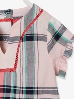 Joli madras sur la blouse bébé fille ! On aime l’association avec l’ajouré crochet ! Facile à enfiler, la blouse de bébé se pressionne au dos !