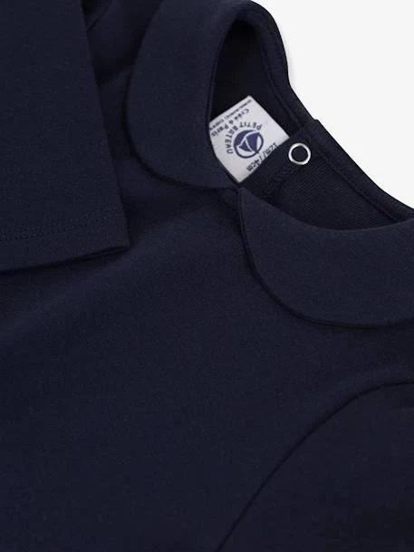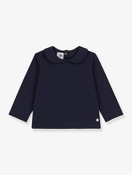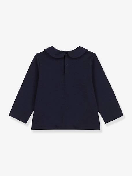 Une jolie blouse en côte, la matière emblématique de Petit Bateau avec col Claudine toujours aussi craquant sur bébé.