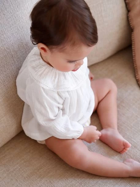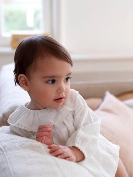 Le parfait cadeau de naissance cette blouse en gaze de coton, la matière chouchou du moment, ultra douce et naturellement froissée. Soulignée d’une fine dentelle sur son col volanté, et dans des teintes en accord avec notre collection naissance, cette adorable blouse complète à merveille le trousseau de bébé !