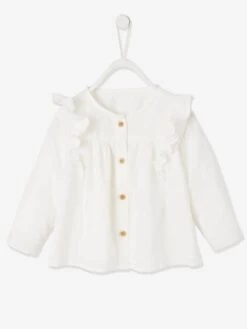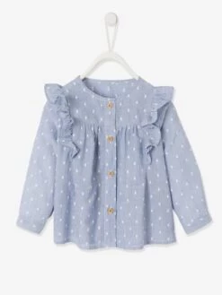 Beaucoup de charme pour cette blouse entièrement boutonnée à l’avant et rehaussée de fronces et de volants. Un joli haut qui offre un style à la fois habillé et décontracté !