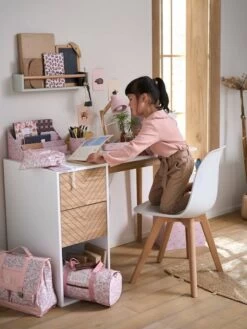 Quel plaisir de faire ses devoirs sur un si joli bureau ! Simple et efficace avec son design épuré et sa couleur blanc/bois, ce bureau se distingue par ses 2 tiroirs en bois massif, ornés de chevrons.