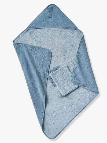 Notre cape de bain Dinosaure accueille bébé à bras ouverts pour l’essuyer et le réchauffer à la sortie de l’eau ! Accompagnée de son adorable gant de toilette dans un coffret prêt à offrir, c’est une belle idée cadeau pour souhaiter la bienvenue à un nouveau-né !