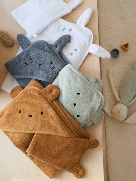 Détails brodés, oreilles en relief… on ne résiste pas à la jolie frimousse de cette cape de bain bébé ! En plus d’être jolie, elle est en coton bio* tout doux, et fait un cadeau de naissance idéal !