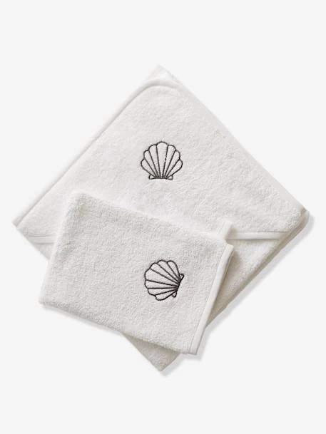 - Motif brodé sur la capuche de la cape de bain et le gant de toilette