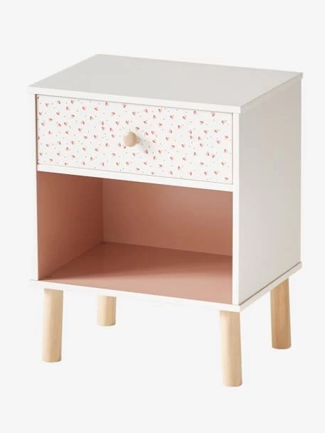 Chevet enfant LIGNE LÉA en panneaux de fibres de bois, pieds et poignées en hévéa, finition peinture à l’eau.