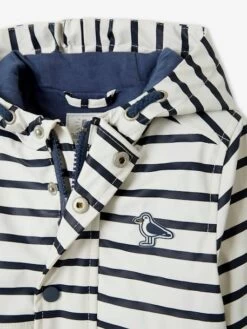 Ohé matelot ! Un ciré pour affronter le vent, la pluie et les embruns… Avec sa capuche protectrice, son traitement déperlant et sa doublure douce, ce ciré est un incontournable du vestiaire de bébé.