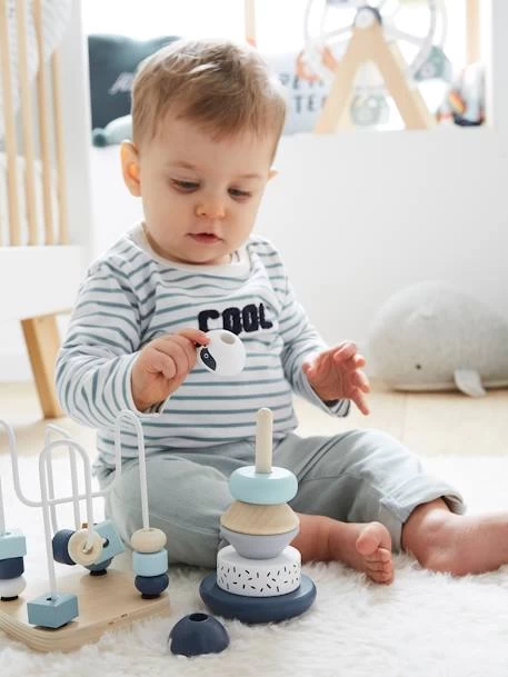 Offrez à votre enfant un adorable set de 3 jeux en bois, grâce auquel il pourra stimuler ses sens et faire de très chouettes découvertes ! Ce coffret se compose d’un mini boulier, d’un ours des formes à encastrer et d’un jeu des formes à empiler. Ces activités sont excellentes pour développer la motricité fine et leur joli design vous permet de les exposer dans la chambre comme un élément de déco !