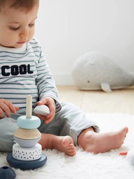 Jeu des formes à empiler (pic et 6 pièces) : hauteur 16 cm – Base : 9 cm de diamètre