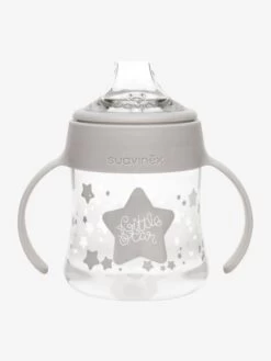 – 1 tasse à boire avec anses et bec silicone antifuite qui permettra à bébé d’apprendre à boire comme les grands,