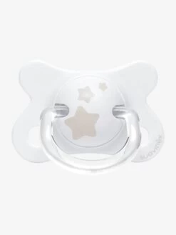 – 1 sucette -2-4 mois en silicone qui répondra en douceur aux besoins naturels de succion et qui convient parfaitement aux bébés prématurés (-2 mois). Ses trous d’aération permettent d’éviter les rougeurs, et son anneau facilite la récupération de la sucette ainsi que la fixation à un attache-sucette.