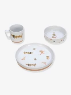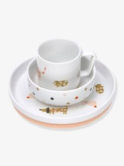 Pour donner à votre enfant l’envie de tout manger et rendre ses repas plus amusants, voici un set de vaisselle raffiné, au joli décor ludique et une excellente idée de cadeau ! Composé d’une assiette, d’une tasse et d’un bol, ce coffret-repas est réalisé en porcelaine, un matériau idéal qui garde mieux les plats au chaud, n’a ni goût ni odeur, est compatible micro-ondes et lave-vaisselle tout en résistant aux rayures.