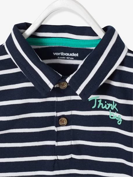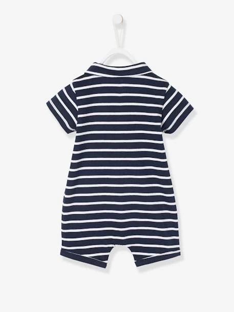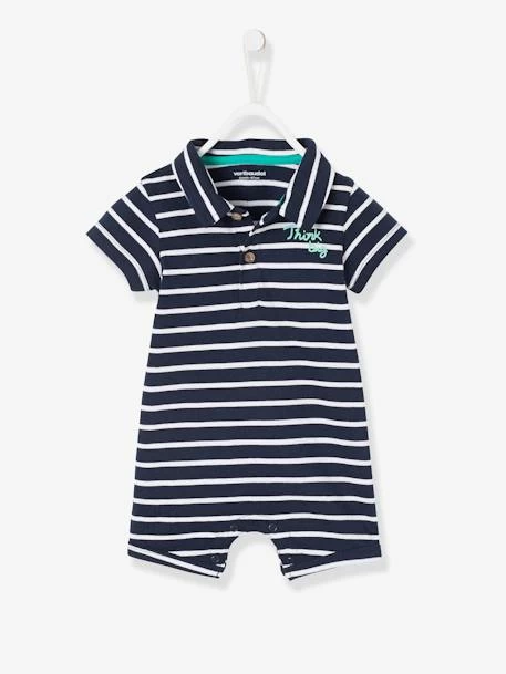 Animée d’un motif en volume, la combi rayée manches courtes bébé a plus d’un atout : col polo et rayure marinière : on valide pour l’été !