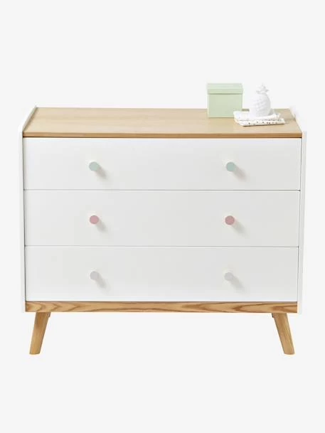 Esprit nature pour cette commode qui allie l’élégance du bois, coloris tendance et lignes tendres ! Fonctionnelle et bien pensée, elle est livrée avec 3 jeux de 6 poignées de couleurs différentes pour s’accorder à la chambre de votre enfant.