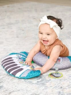 Coussin Piano évolutif 3 en 1 Infantino. Bébé va adorer son piano et son coussin douillet sur lequel il pourra jouer confortablement installé, sur le ventre ou le dos. 3 modes de jeu qui accompagnent la croissance de bébé: dans le lit avec le piano accroché aux barreaux, à plat ventre et assis.