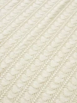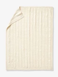Une jolie couverture en tricot pointelle délicat idéale pour accompagner bébé et le réchauffer à la maison ou lors de vos sorties. Pour la petite touche brillante, elle est tissée avec des fils lurex dorés.
