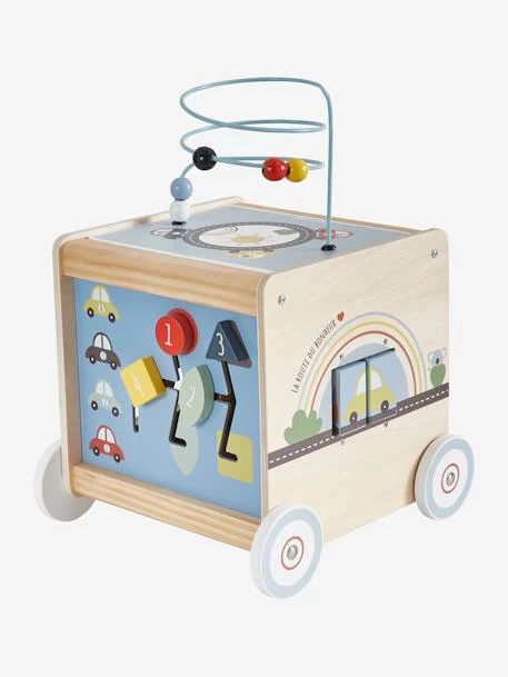 Un joli cube aux multiples activités, qui aidera bébé à s’éveiller et à développer sa motricité. Sur le thème des voitures, il offre une approche ludique à l’éveil des sens avec des jeux comme les engrenages, un puzzle, un boulier… et bien d’autres surprises que votre enfant se fera une joie de découvrir ! Le petit plus de ce cube d’activités, la corde qui permet à l’enfant de l’amener où bon lui semble !