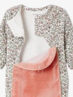 Dors-bien bébé fille pressionné devant en velours 78% coton, 22% polyester.