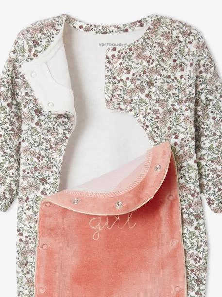 - Imprimé petites fleurs all over, partie pressionnée devant unie avec inscription « baby girl »