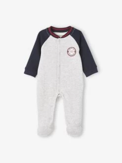 Dors-bien bébé garçon pressionné devant en molleton 80% coton, 20% polyester.
