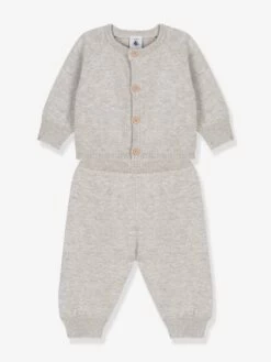 Un bel ensemble 2 pièces réalisé avec un mélange de laine et de coton qui confère douceur et chaleur à votre bébé.