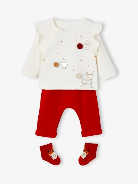 Quelle bonne idée cet ensemble 3 pièces à déposer le soir de Noël au pied du sapin ! Avec ses détails dorés et ses pompons, il apporte fantaisie et gaité au coeur de l’hiver. Une tenue douillette et confortable à offrir aux tout petits dès 54 cm. En bonus : les chaussettes assorties, les mamans vont dorer !