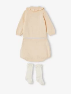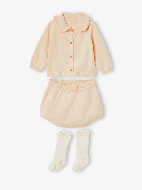 Un petit air rétro tellement charmant, cet ensemble a un parfum d’antan sans oublier le confort et son prix mini ! 3 pièces parfaitement coordonnées pour des bébés tendance. Un cardigan avec un col souligné de dentelle, un bloomer très confortable et summum les chaussettes assorties ! Cet ensemble est le cadeau parfait !