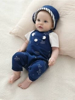 Bob et salopette bébé naissance en molleton et popeline imprimée 100% coton