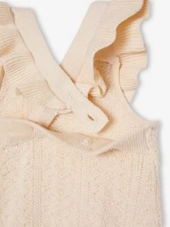 Une maille fantaisie, des bretelles volantées et un bonnet noeud craquant… comment résister à ce beau duo! En cadeau de naissance, pour une cérémonie ou une belle journée d’été, cet ensemble comblera les parents.
