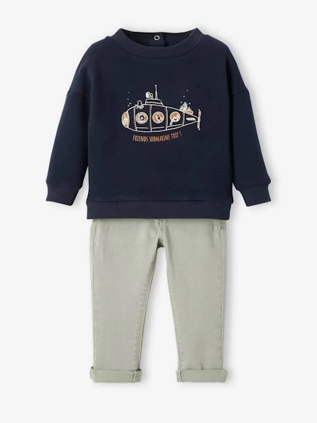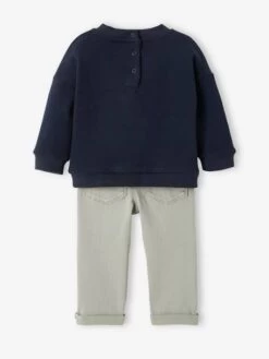 - Ensemble bébé sweat en molleton + pantalon en sergé