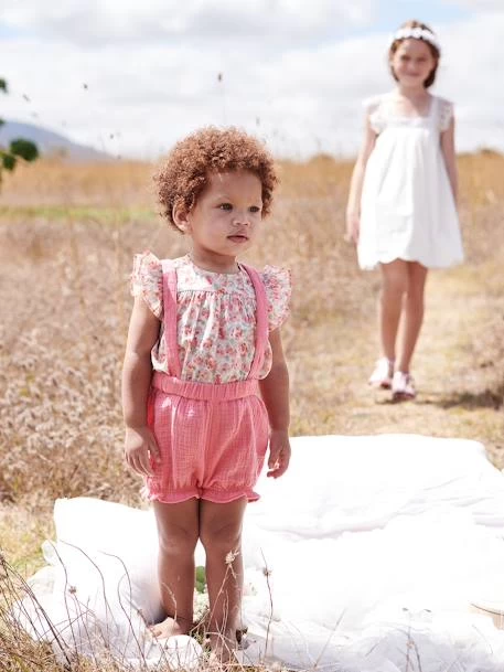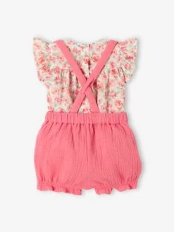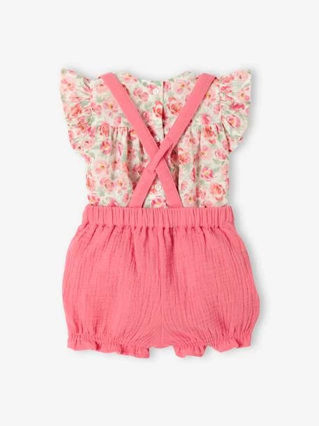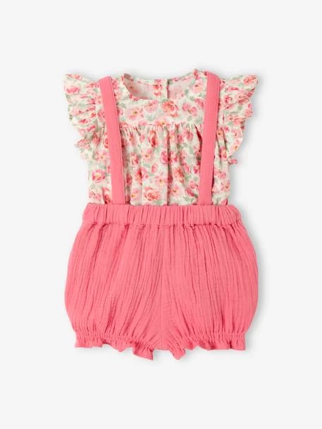 Ensemble blouse fleurie et short en gaze de coton bébé 100% coton.