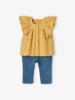 Ensemble blouse vichy en seersucker et jean large bébé 100% coton.
