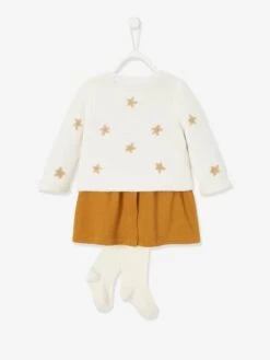 En recherche d’une idée cadeau ? Coquet, raffiné et confortable, ce trio robe + cardigan + collant est parfait ! Un ensemble à glisser dans la liste de naissance vertbaudet !