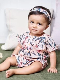 Belle idée cadeau : l’ensemble 2 pièces combinaison bébé et bandeau assorti en voile de coton imprimé ! On aime l’imprimé floral qui annonce la belle saison, on craque pour le voile de coton ultra léger et fluide qui accompagne les mouvements de bébé, tout simplement ! Son volume « barboteuse » en fait un vêtement tout confort laissant place à la couche !