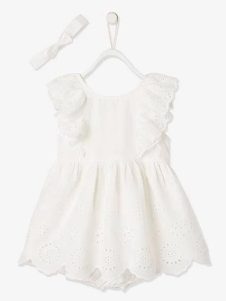 Ensemble de cérémonie bébé robe, bloomer et bandeau 100% coton. Doublure 100% coton.