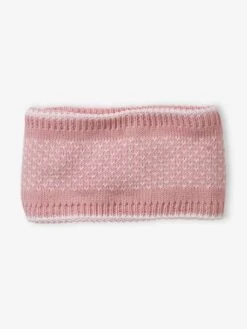 Ensemble bonnet + snood + moufles bébé fille en maille 60% coton, 40% polyester, doublure 100% polyester.