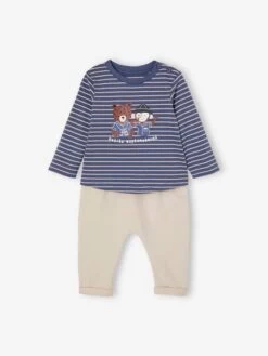 Ensemble T-shirt et pantalon molleton bébé 99% coton, 1% viscose.