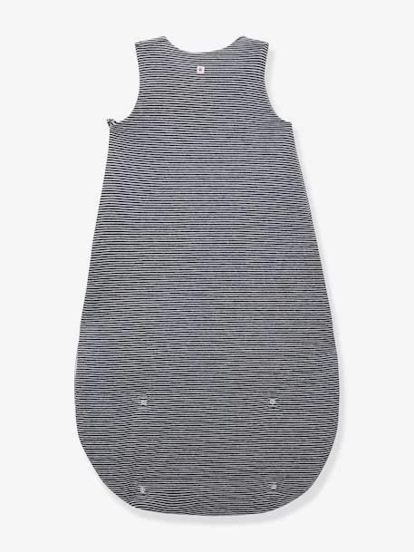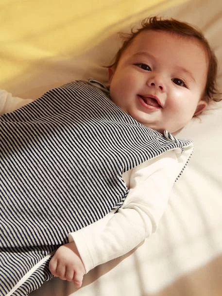 On craque pour la rayure marine de cette adorable gigoteuse en velours de coton bio. Bien chaude, idéale pour l’hiver, elle promet des nuits toutes douces à bébé.
