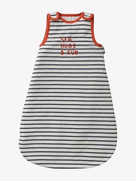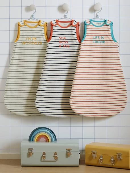 Les beaux jours sont là, on ose la couleur ! Matière éponge et rayure esprit marin, voici tout ce dont on rêve pour les nuits d’été de bébé ! Une gigoteuse légère et tendance avec ses larges bords-côtes contrastés et un petit message brodé pour encore plus de personnalité ! Confectionnée sans ouatinage, elle couvre bébé tout en douceur lorsque les nuits sont chaudes.