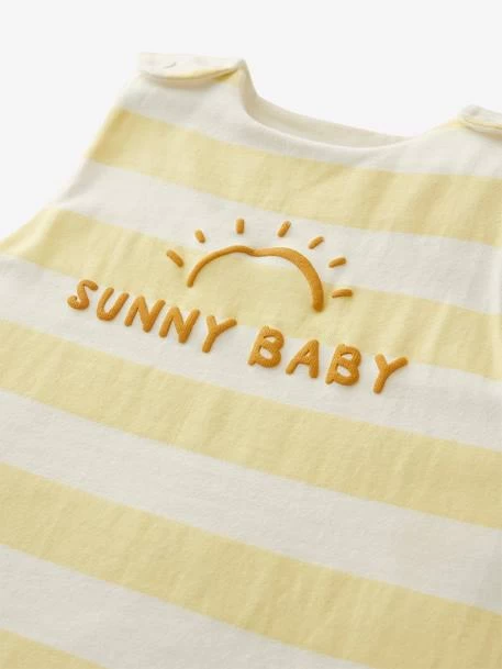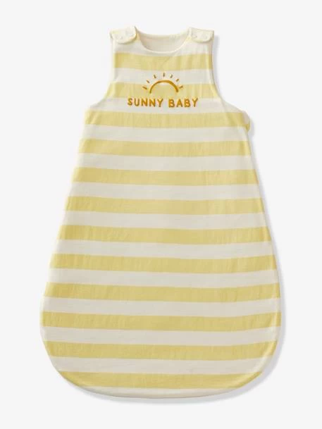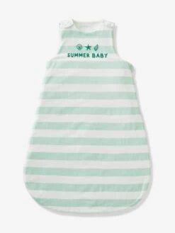 Symbole des vacances sous le soleil, la rayure transat annonce les beaux jours et les nuits chaudes, quand bébé a besoin d’être légèrement couvert. Réalisée sans ouatinage, la gigoteuse spéciale été remplace la couverture lorsque les températures sont à la hausse et promet des dodos confortables, en toute sécurité.