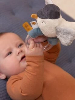 Issu de la collection Sailors Bay, cet adorable Hochet Mouette conçu par Little Dutch attisera la curiosité de votre tout-petit tout en l’accompagnant dans son éveil. Grâce à son anneau, il sera facile à attraper. Bébé pourra profiter pleinement des différentes textures le composant et des ailes crépitantes. Très amusant, dans son anneau se trouvent trois billes en plastique qui bougeront en même temps que le hochet et feront un léger bruit.