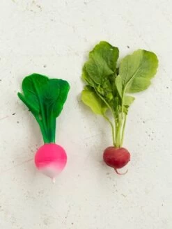 Voici un adorable radis qui enchantera les bébés qui ne peuvent pas encore en croquer de vrais. Fabriqué selon un procédé artisanal et durable à partir de caoutchouc 100 % naturel provenant de l’hévéa, il pourra être utilisé comme jouet de dentition, de bain ou objet décoratif. Flexible et souple, il sera facile à saisir et pourra être pressé et mâchouillé par les petites mains et petites dents. Le jouet idéal pour éduquer les enfants dès leur plus jeune âge à une alimentation saine !