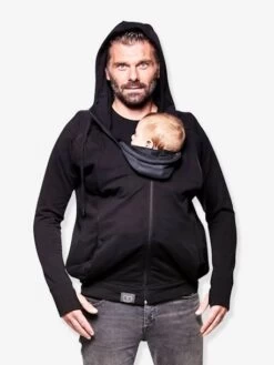 – des zips invisibles, cachés de chaque côté, permettent d’adapter le sweat en déployant du tissu supplémentaire pour une utilisation durant la grossesse puis avec un porte-bébé - Large capuche ajustable par cordon de serrage