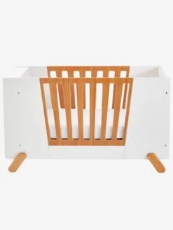 Lit bébé en bois et panneaux de fibres de bois.