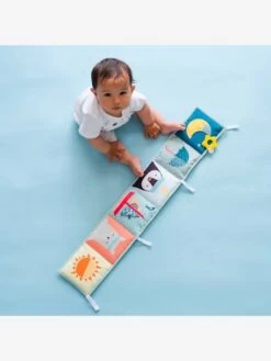 Son premier livre en tissu évolutif. A poser sur le sol, dans le landau, la nacelle, le berceau ou dans le lit, ce livre est nomade et accompagne partout bébé. Evolutif, bébé découvre les activités en fonction de son âges.