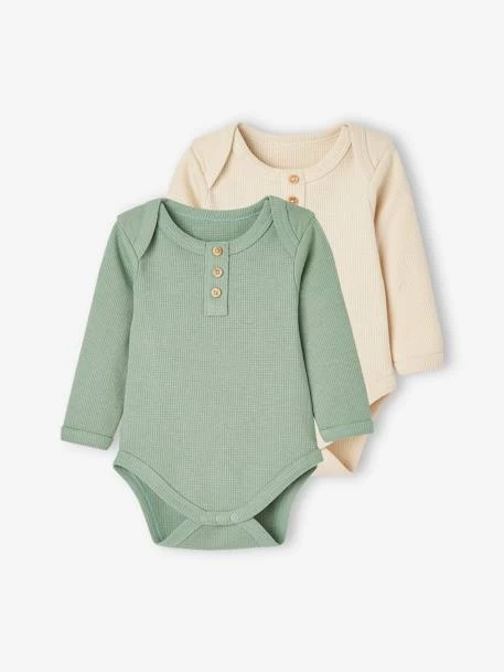 Lot de 2 bodies bébé en maille nid d’abeille 100% coton